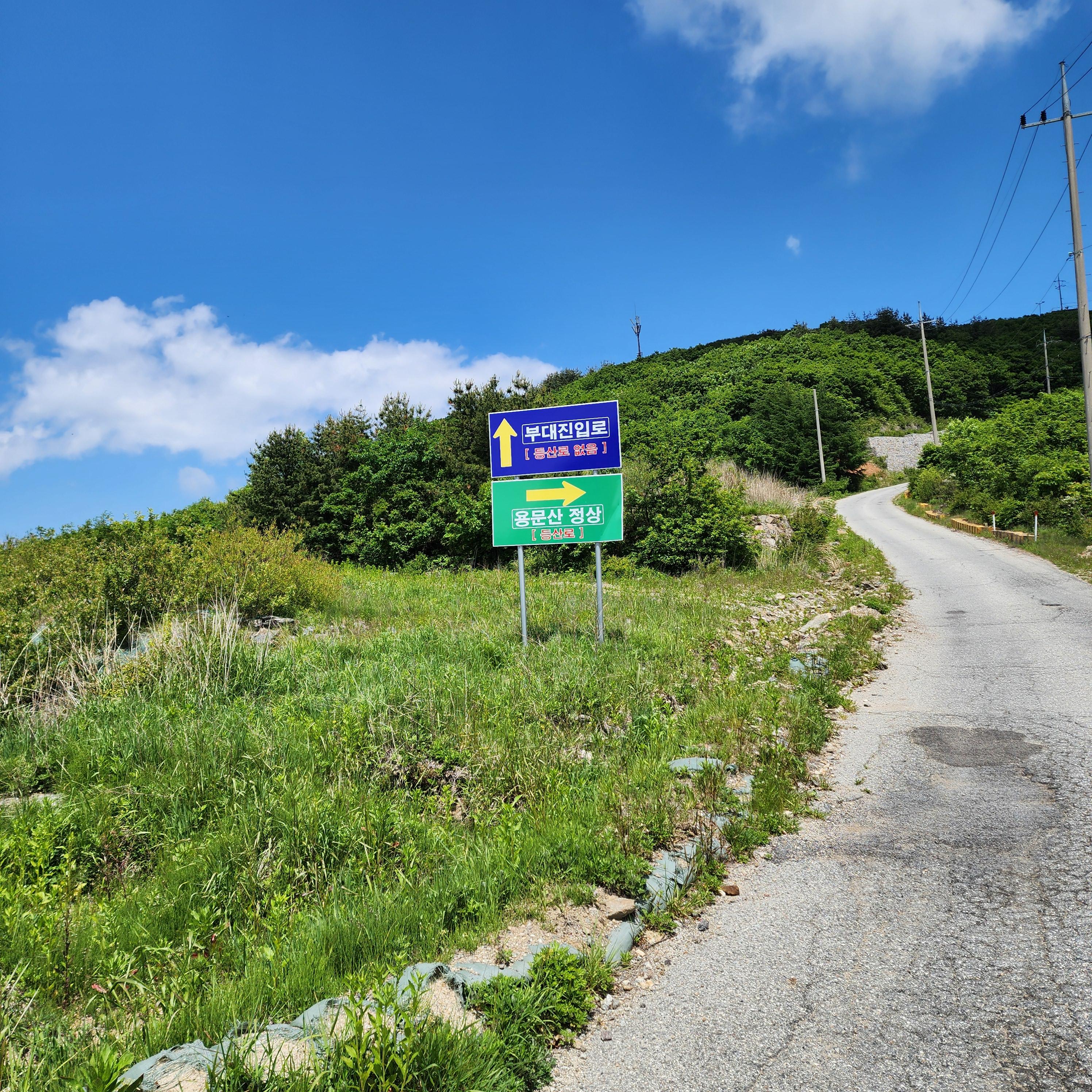 용문산의 최단코스는 용천스카이벨리펜션 주차장보다 위에 있는