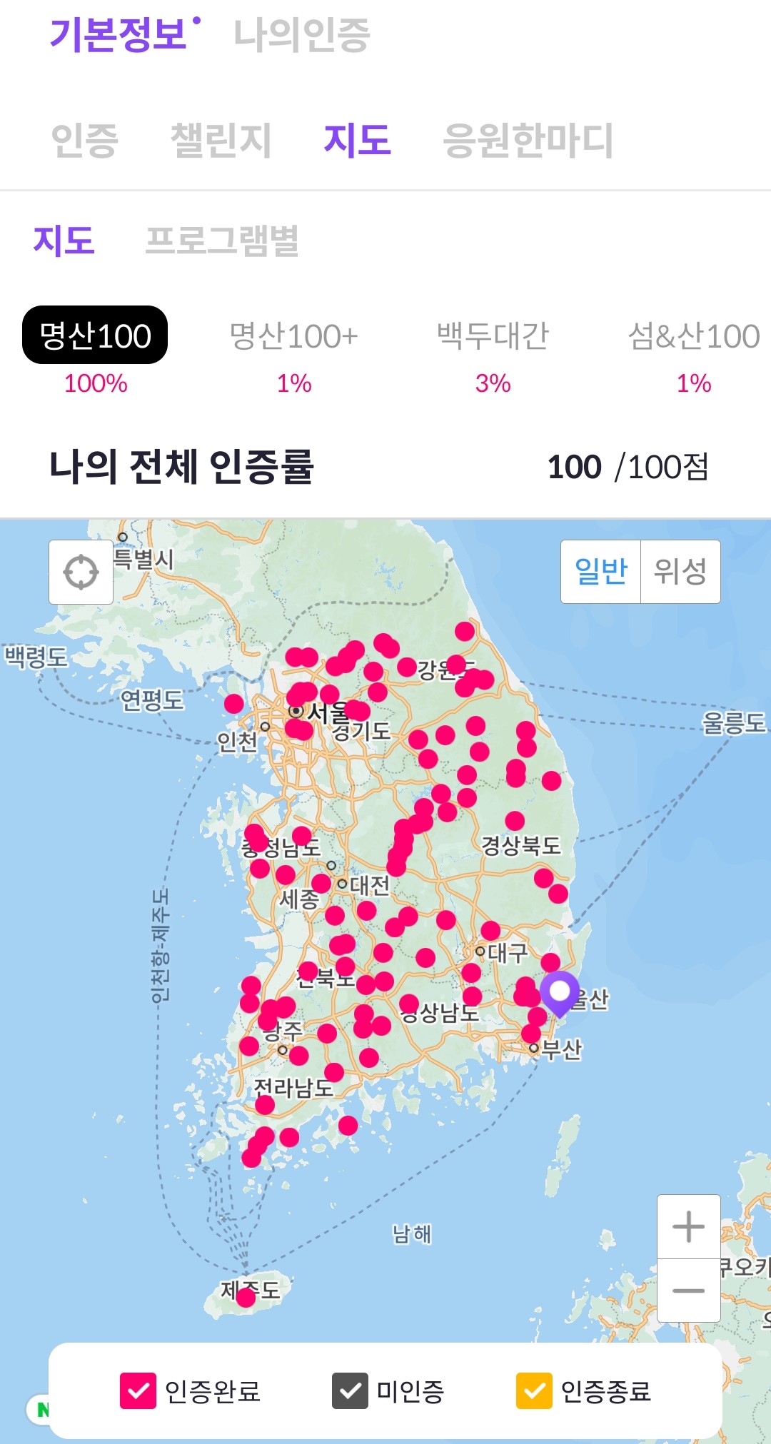명산 100에 100%